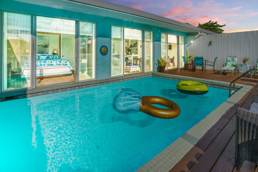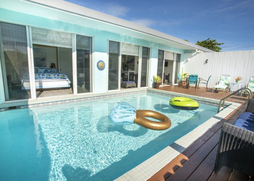 The private villa in a prime location offers the unmatched ability to wake up, open your bedroom door, and jump right into your own private pool. The luxury accommodations include a well equipped kitchen with quartz counters, breakfast bar, gas cooking and full sized fridge/freezer.
