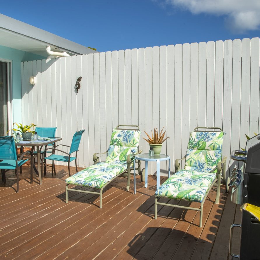 Deck w/ Propane Grill, Dining Set & Lounge Chairs