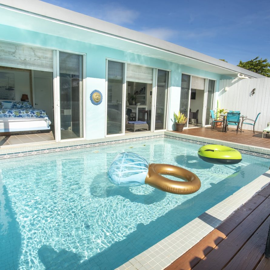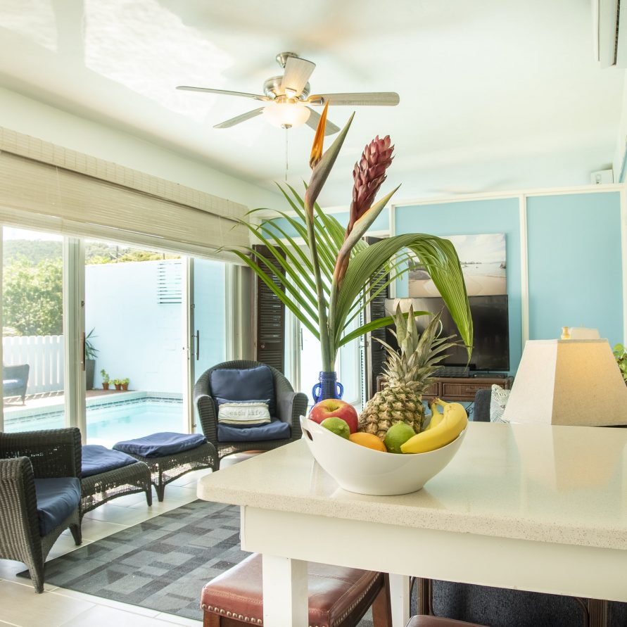 The private villa in a prime location offers the unmatched ability to wake up, open your bedroom door, and jump right into your own private pool. The luxury accommodations include a well equipped kitchen with quartz counters, breakfast bar, gas cooking and full sized fridge/freezer.