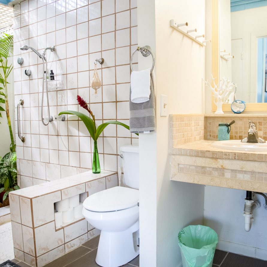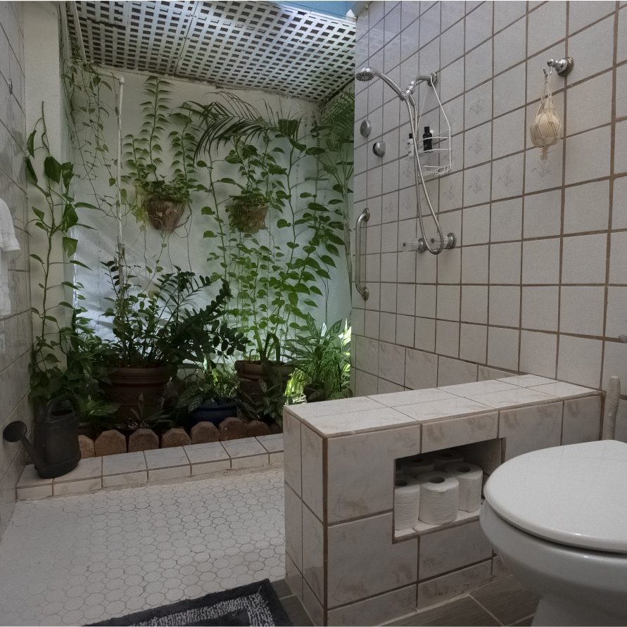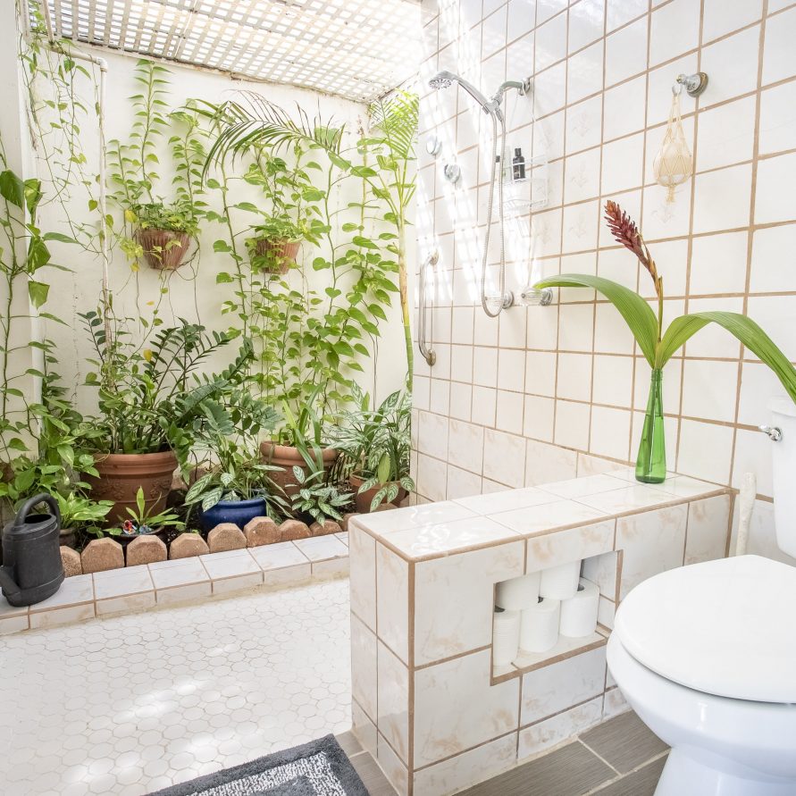 The villa features an indoor shower with an outdoor feel. We call it the garden shower, and it seems to be a favorite amenity among guests.