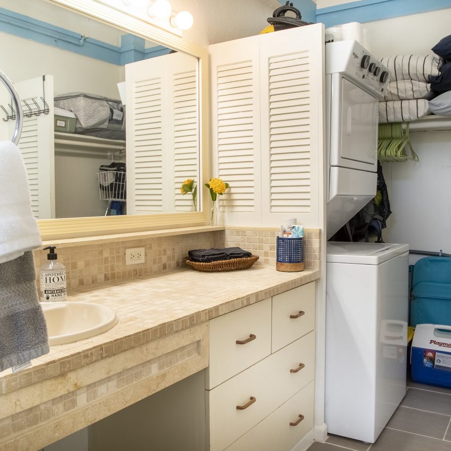 The villa is equipped with a full size range with gas cooking, a refrigerator / freezer & pots / pans. There’s a coffee makes, toaster, blender and microwave. You’ll also find all the dining utensils, glassware & dishes you’d expect along with some handy kitchen gadgets.