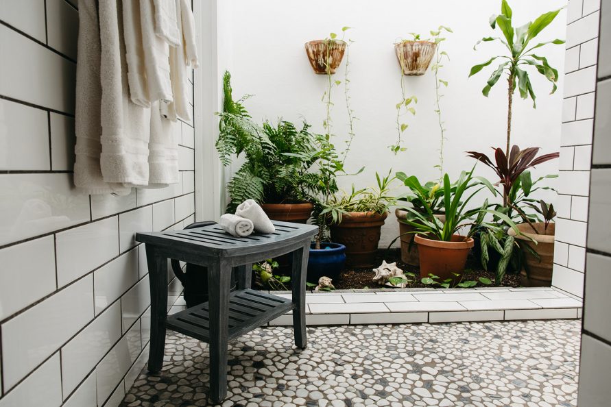 The villa features an indoor shower with an outdoor feel. We call it the garden shower, and it seems to be a favorite amenity among guests.